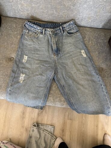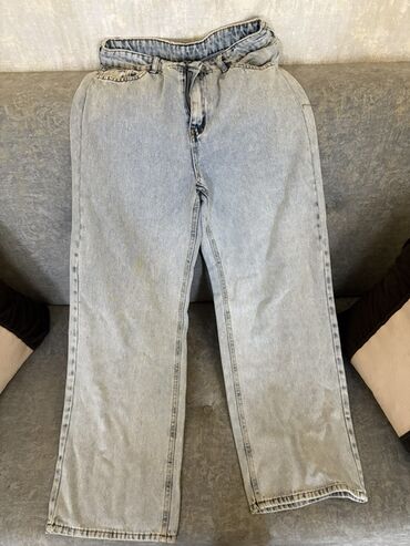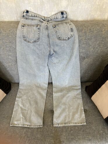 - Material: 100% denim (cins parça), açıq mavi və açıq-boz yuma effektli.