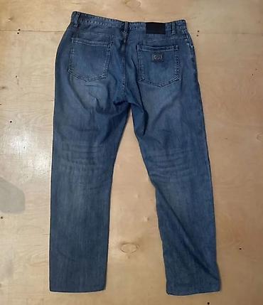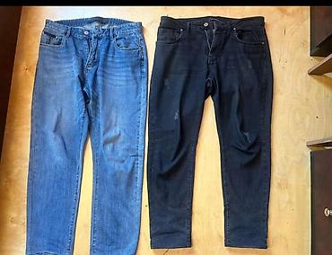 Çox az geyinilib 32 ölçü Tünd mavi rəngli cins şalvar - Klasik düz kəsim; gündəlik geyimə uyğun - Arxa tərəfdə bir ədəd paçalı cib, üzərində dekorativ tikiş i...