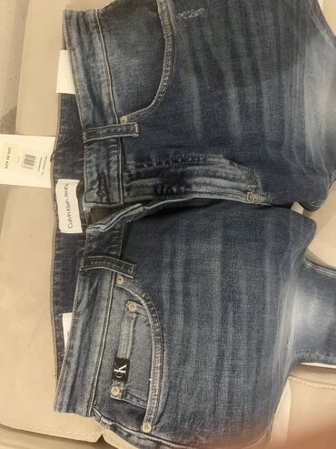 Calvin Klein Jeans markalı, göy rəngdə, düz biçimli cins şalvar. Bu şalvar gündəlik geyim üçün rahat və dəbli seçimdir. Zədələnmiş dizaynı ona müasir bir görünüş verir.