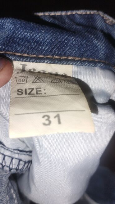 - Material: Denim (etiketdə 40°C-də yuma, ağartmamaq, orta temperaturda ütüləmə nişanları var)