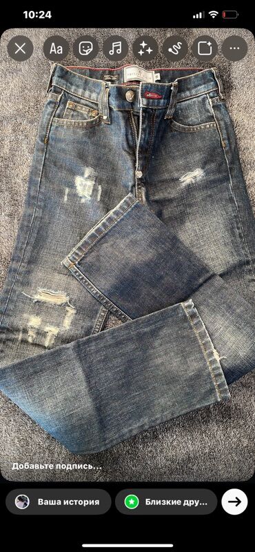 Təzədi demək olar ki cəmi iki üç dəfə geyinilib Açıq mavi rəngdə, “distressed/ripped” dizayna malik cins şalvar. Ön hissədə çoxsaylı dekorativ cırıqlar və ağ rəngdə boyama effekti, arxa hissədə iki...
