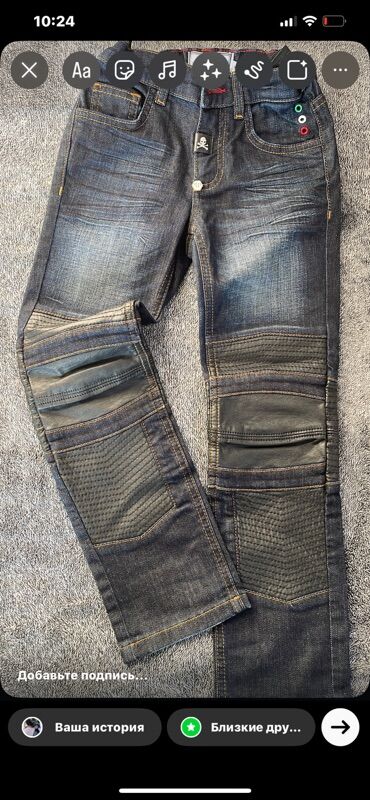 Tünd rəngli kişi cinsi (jeans) şalvar ozumcun almisdim kokelmisem deye satram tep tezedir 👍 - Arxa hissə: iki arxa cib; sağ arxa cibdə relyefli yazı/dekoratif naxış - Material: qalın denim (pambıq ...