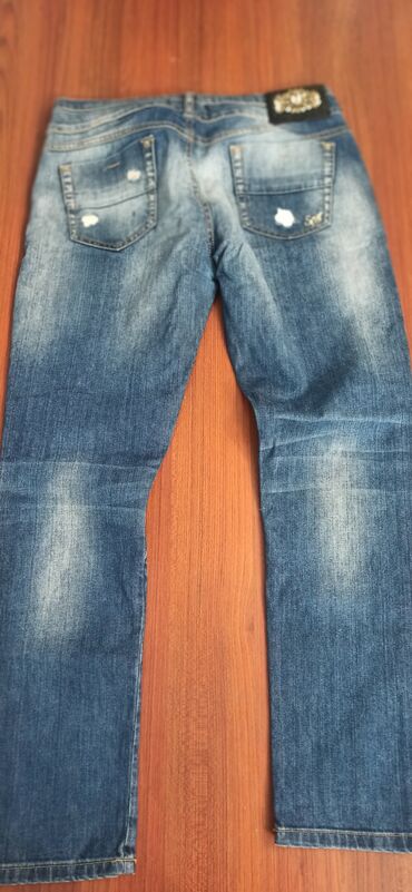 - Arxa hissə: arxa ciblərdə yüngül aşınma efektləri; beldə dəri etiket üzərində metal bəzək (ornament və daşlarla)