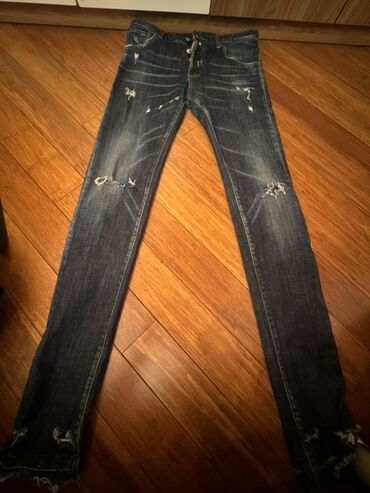 Qara-bozum rəngli, yuyulmuş effektli denim cins şalvar. - Kəsim: dar/koniq (slim-tapered siluet), normal bel. - Material: klassik denim (pambıq əsaslı). - Rəng: kömür-boz (stonewash/acid wash görün...
