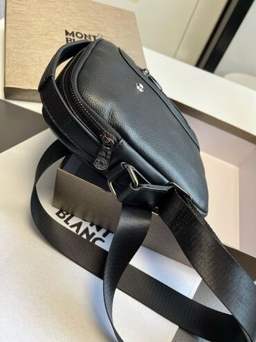 Montblanc kişi çiyin çantası - Material: qara rəngli toxumalı natural dəri görünüşlü material, yumşaq faktura - Kompakt vertikal dizayn, gündəlik istifadə və səyahət üçün rahat - Ön hissədə Montbl...