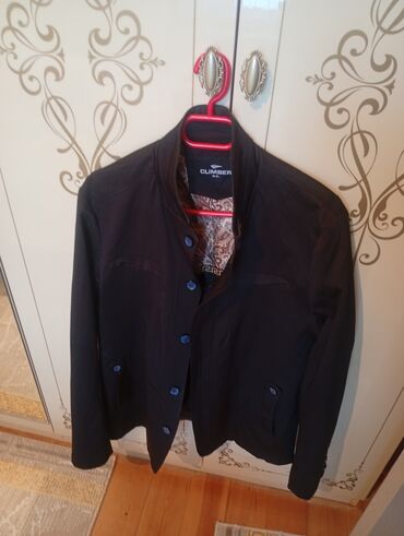 Brend: Climber Model: kişi gödəkcəsi/şənbə-cübbə tərzində, stend-yoqa yaxalıq - Rəng: tünd (qara/dənizçi mavisi tonunda), mavi düymələrlə - Material: nazik, gündəlik və yarım-klassik üsluba uy...