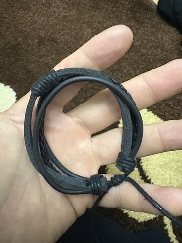 Kişi üçün dəri qolbaq - Material: təbii dəri və hörgülü neytral rəngli kordon (qara/çəkmə yaşıl tonlarında) - Dizayn: ikiqat – kənarlarda hamar karamel rəngli dəri zolaq, ortada qalın hörgülü kəmə...