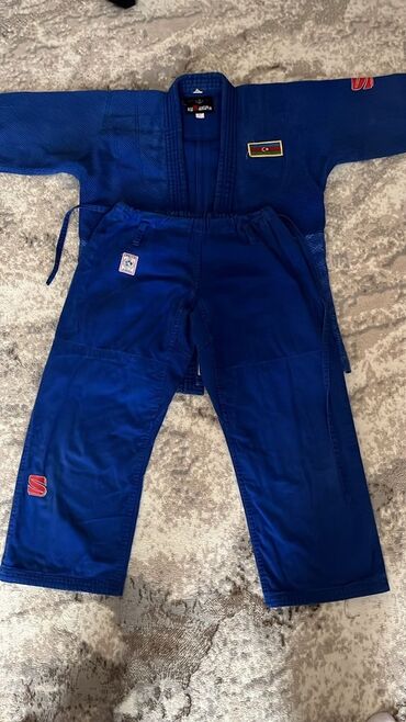 Cüdo geyimi (kimono) – göy rəngdə iki hissəli dəst. - Üst: qalın, toxumalı parça, gücləndirilmiş yaxalıq və tikişlər. Geniş qol kəsimi hərəkət rahatlığı verir. - Şalvar: elastik rezinli bel, diz h...