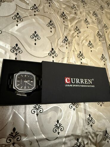 Məhsul yenidir. Curren brend saatı. Kəməri şəkildə işdənmiş kimi görsənir amma o materialın öz rəngidir belə.işlənməyib qəti. Qiymət sondur.