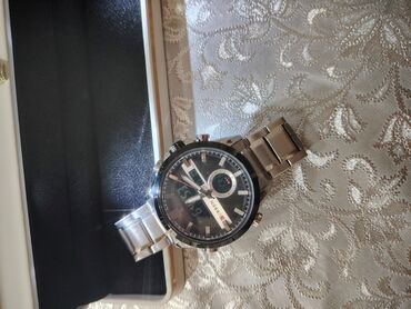 Qızılı rəngdə klassik qol saatı - Brend/işləmə: GENEVE yazılı qızılı siferblat - Korpus: qızılı tonlu dairəvi metal, yanlarda tac və iki düymə - Funksiyalar: xronoqraf alt-siferblatları, tachymete...