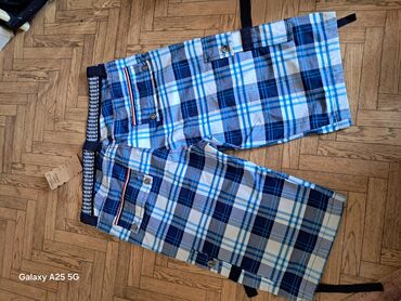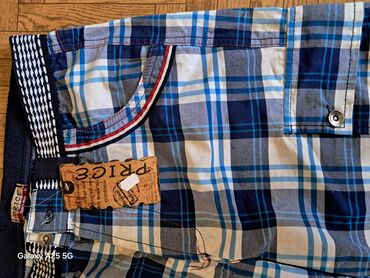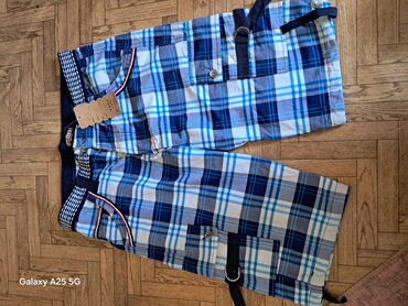 Mavi rəng çalarlarında dama naxışlı kişi şortu