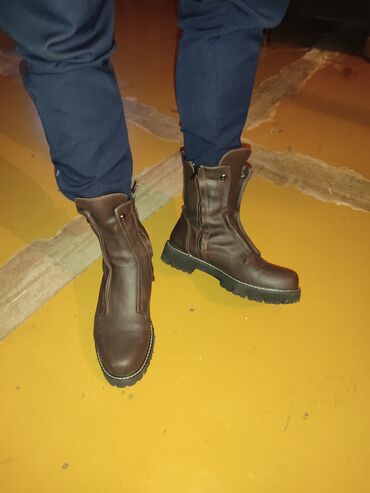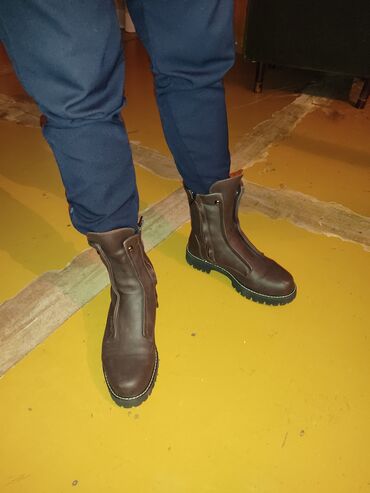 Şık görünüşlə funksionallığı birləşdirən tünd qəhvəyi kişi botları.