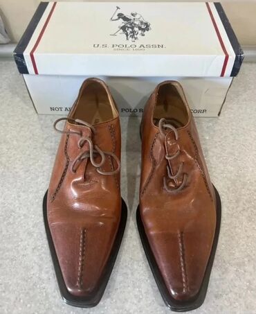 Məhsul: Kişi klassik dəri ayaqqabıları - Brend: U.S. Polo Assn. (qutusu ilə) - Model: Bağlı, kvadrat-uclu klassik üslub - Material: Təbii dəri üstlük, dəri daxili - Rəng: Konyak/qəhvəyi - Altlıq: ...