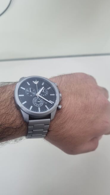 Emporio Armani kişi qol saatı hediyye alinib 280 azne boyukdu mene tecili pul lazimdi satram - Korpus və qolbaq: metal, paslanmayan polad görünüşlü, bərk halqalı biləkbağı - Rəng: tünd boz/gümüş t...