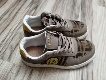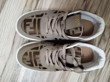 - Dizayn: klassik şnurbağlı bağlama, dillikdə qızılı “FENDI” yazısı, yan tərəfdə dairəvi Fendi loqosu