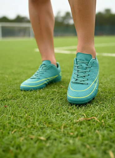 Məhsul: Futbol butsası (qapalı/halı sahə üçün) - Rəng: Tünd yaşıl–mint tonunda, neon-sarı detallar - Üst material: Teksturalı sintetik üst (karetka qəfəsi naxışlı), topa nəzarəti artırmaq üçün - B...