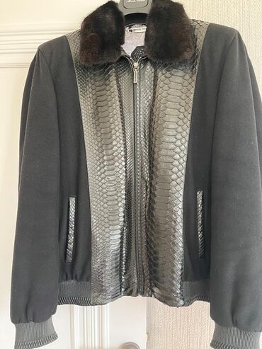 Stefano Ricci kişi kürk yaxalı gödəkçə - Rəng: qara - Ölçü: 50 (etiketdə göstərilib) - Material kombinasiyası: ön və arxa hissə mat parça, çiyinlər, qollar və döş ciblərində ilan dərisi fakturalı ...