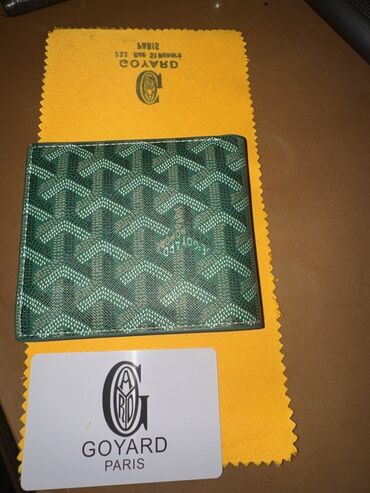 Digər materialGoyard Paris kişi pul kisəsi – yaşıl rəng, klassik “Chevron/Goyardine” naxışlı dizayn.