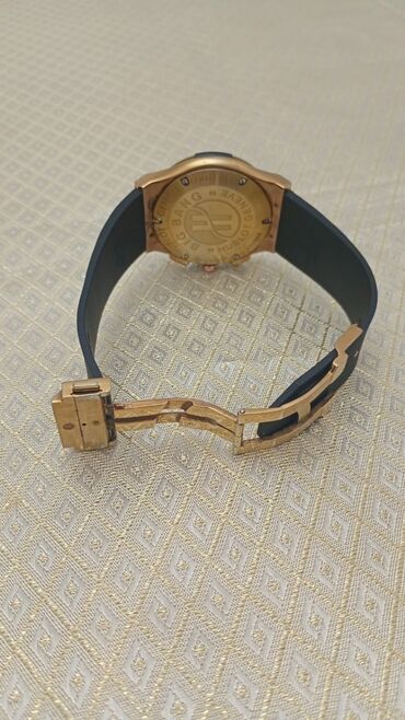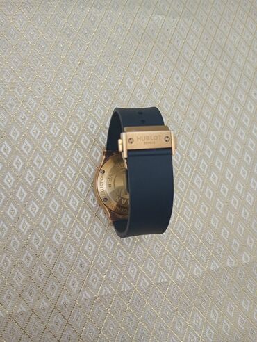 - Qapanma: qatlanan klips, qızılı tonlu, üstündə “Hublot Geneve” yazısı