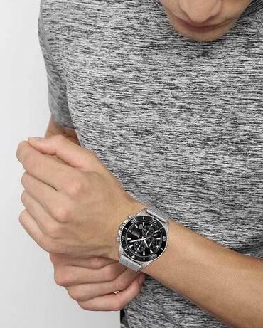 Təmiz, modern dizayn – gündəlik və klassik geyimlə uyğunlaşır. Gümüşü mesh bilərzik biləkdə rahat oturur, qara siferblat isə yüksək oxunaqlılıq verir. Xronoqraf düymələri və dönə bilən çərçivə ilə funksional istifadə üçün uyğundur.