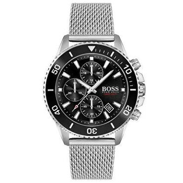 HUGO BOSS kişi qol saatı – idman üslublu xronoqraf - Model: BOSS (üz qapağında loqo) - Korpus: paslanmayan polad, parlaq/satin işləmə - Çərçivə: qara rəngli, 10–20–30–40–50 qeydli dönə bilən üzükl...