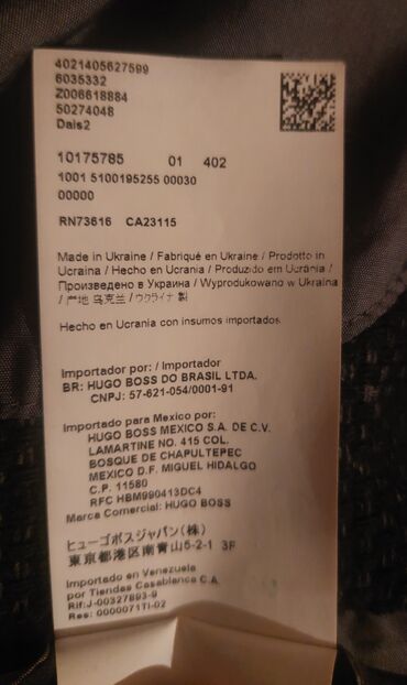 - Rəsmiləşdirilən etiket: HUGO BOSS AG, Metzingen, Germany