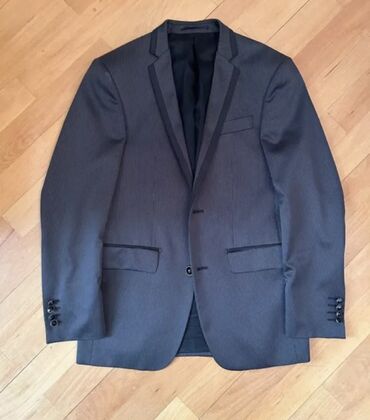 Kişi kostyumu – tünd boz rəngdə, incə zolaqlı klassik model. Razmer 48