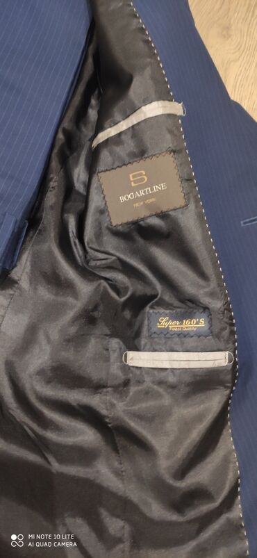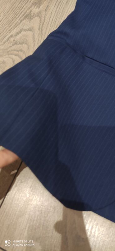 - Rəng: tünd göy, incə şaquli zolaqlı (pinstripe)