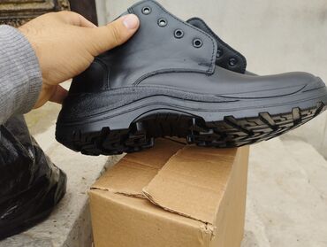 Qara rəngli taktiki/iş çəkmələri - Material: hamar dəri üst hissə, iç hissədə yumşaq yastıqlama - Bağlanma: yan tərəfdə möhkəm fermuar və əlavə velkro kilid, üst hissədə deşikli bağlama üçün nəzər...