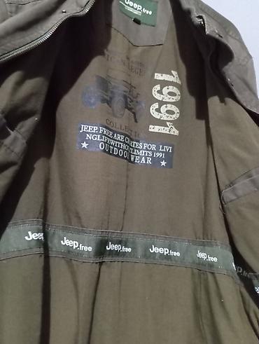 Brend Jeep.free kişi gödəkçəsi ela vəziyyətdə– outdoor üslub - Rəng: zeytun-yaşıl (xaki). - Model: stend yaxalı, önü fermuarlı və düyməli qapaqla. - Brend: Jeep.free (daxili hissədə və etiket lent...