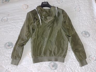 Zeytun-yaşıl rəngdə yüngül küləkkeçirməz kişi gödəkçəsi.