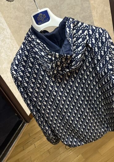 Dior naxışlı kapüşonlu yüngül jaket - Rəng: tünd göy/ağ monoqram naxışlı parça (tam səthdə) - Model: kapüşonlu, tam ön fermuarlı - Detallar: metal “Dior” yazılı fermuar başlığı, ikitərəfli ön cib,...
