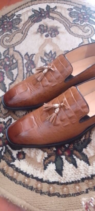 Pulsuz çatdırılmaKişilər üçün klassik loaferlər. Ayaqqabılar açıq qəhvəyi rəngdədir və timsah dərisi naxışlı səthə malikdir. Hər ayaqqabının üstündə qızılı detallarla bəzədilmiş bəzəkli fırçalar var. Şəhər gəzintiləri və ya rəsmi tədbirlər üçün uyğundur.55₼ saytdan sifariş etmişdim Saz vəziyyət