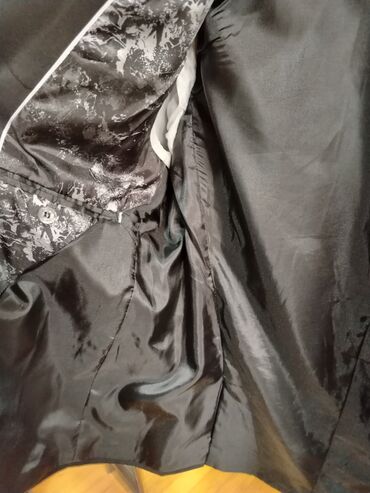 Kişi klassik pencəyi – XXL ölçü - Rəng: tünd zeytun/boz tonlarda - Material: xırda toxumalı parça, içi astarlı - Kəsim: iki düyməlik ön bağlama (şəkildə 3 düyməlik sıra görünür, üst düymə bəzək üç...