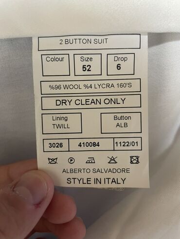 - Parça: 96% yun, 4% likra, 160’s iplik sıxlığı – elastik və nəfəsalan
