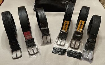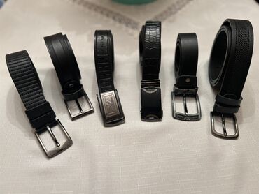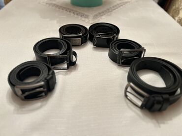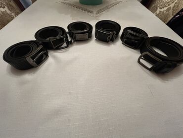 Kişi kəmərləri dəsti – 6 ədəd - Rəng: qara - Material: təbii dəriyə bənzər keyfiyyətli material (müxtəlif fakturalar – hamar, teksturalı, timsah naxışlı) - Bağlama tipləri: klassik sancaq tokalı v...