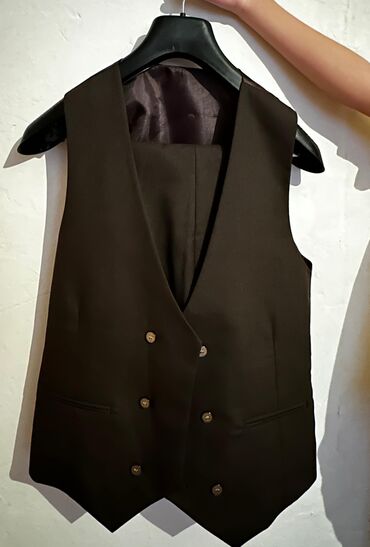 Geyim sifarişlə yeni alınıb gətirilib və sadəcə 44-0 ölçüsü uyğun gəlmədiyindən satılır. İki parçalı kişi kostyumu – qrafit boz rəngdə - Üst: ikicərgəli düymələmə, geniş haşiyəli (peak lapel) yaxa,...