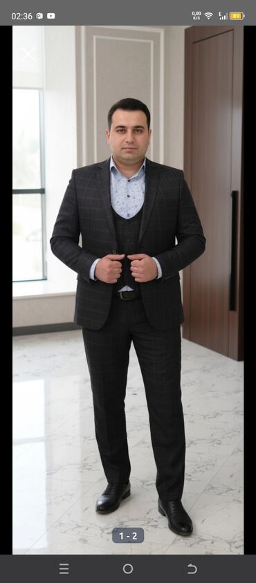 Pierre Cardin kişi kostyumu – klassik nazik zolaqlı dizayn - İki parçadan ibarət: pencək və şalvar - Rəng: tünd (nazik açıq zolaqlar) - Ölçü: 50 - Drop: 6/S - Parça tərkibi: 67% viskoza, 33% polie...