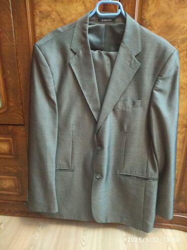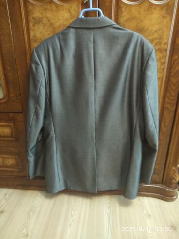 Boz rəngli kişinin kostyum dəsti. 1 dəfə geyinilib - Klassik kəsimli, iki düyməli pencək və uyğun şalvardan ibarət - Parçada xırda kvadrat/çarpaz tekstura, zərif və minimal naxış - Notch yaxalı...
