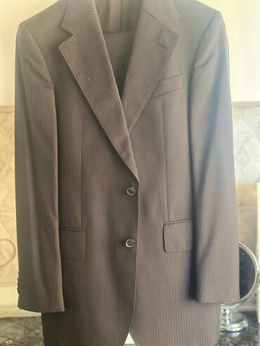 Geyim sifarişlə yeni alınıb gətirilib və sadəcə 44-0 ölçüsü uyğun gəlmədiyindən satılır. İki parçalı kişi kostyumu – qrafit boz rəngdə - Üst: ikicərgəli düymələmə, geniş haşiyəli (peak lapel) yaxa,...