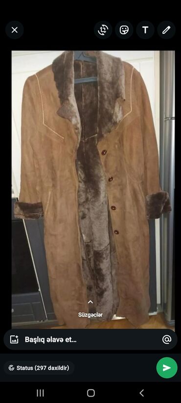1) Qəhvəyi uzun dəridən/semidəndir görünüşlü kürk palto