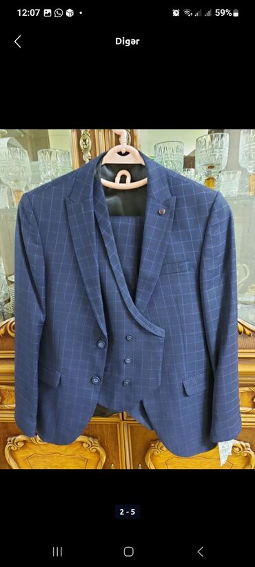 3) Tünd-mavi kişi kostyumu (3-lü)