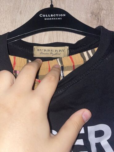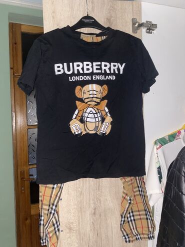 - Köynək: ön hissədə “BURBERRY LONDON ENGLAND” yazısı və Burberry ayı qrafikası. Yaxa içi bej-qara-qırmızı xətli klassik naxışlı astarla. Dairəvi yaxa, qısa qol.