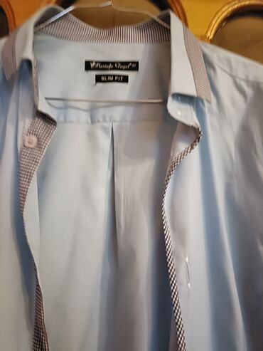 - Dizayn: Açıq mavi rəng, düymə xətti və yaxada xırda dama kontrast parçalar, uzunqol, geniş manjet
