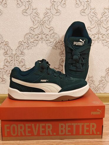 - Rəng: green terrain/alpine snow (tünd yaşıl üst, krem-ağ PUMA zolağı və altlıq)