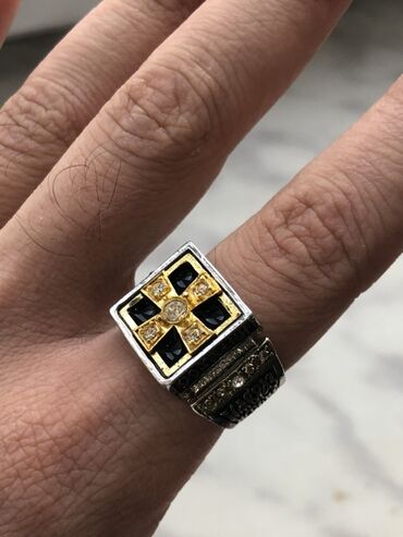 Digər ölçüErkək üzüyü – kvadrat başlı, qara və qızılı tonlarda dekor