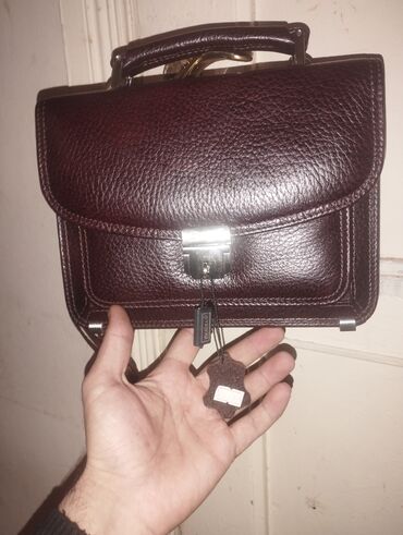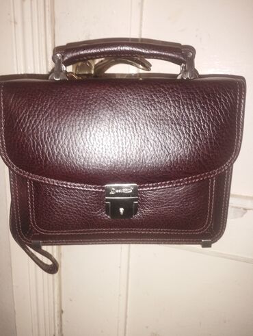 Digər brendKişi əl çantası – qəhvəyi/bordo rəng, təbii dəri fakturalı