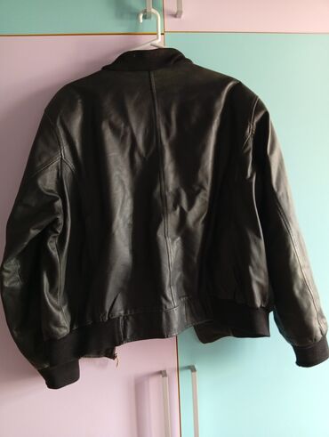 - Klassik qara rəngli, bomber üslubunda kişi dəri kurtkası