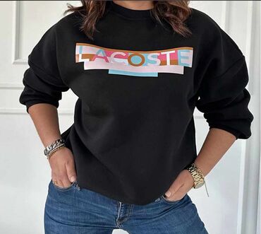 Lacoste qadin/uniseks svitşört A class - Brend: Lacoste - Rəng: qara - Ölçü: M (etiket üzərində qeyd olunub) - Model: crewneck (yuvarlaq yaxalı), uzunqollu - Ön hissə: çoxrəngli “LACOSTE” loqosu i...