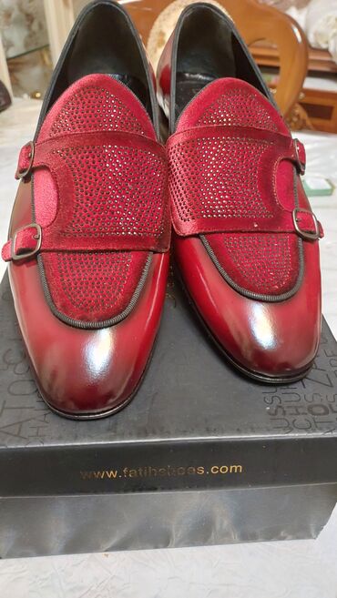 Dəri kişi ayaqqabıları klassik üslubda. Bu ayaqqabılar bağcıqlıdır və brogue dizaynına malikdir. İçərisi tünd qırmızı rəngdədir və "İstanbul Made in Turkey" yazısı olan ağ etiketi var. Həm rəsmi, h...